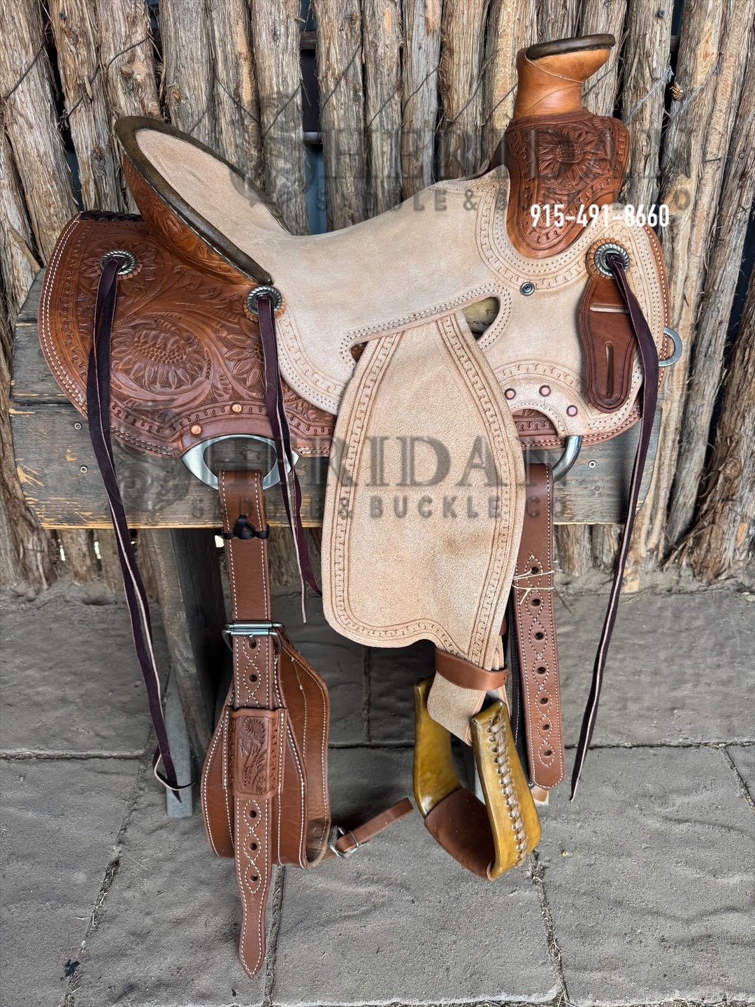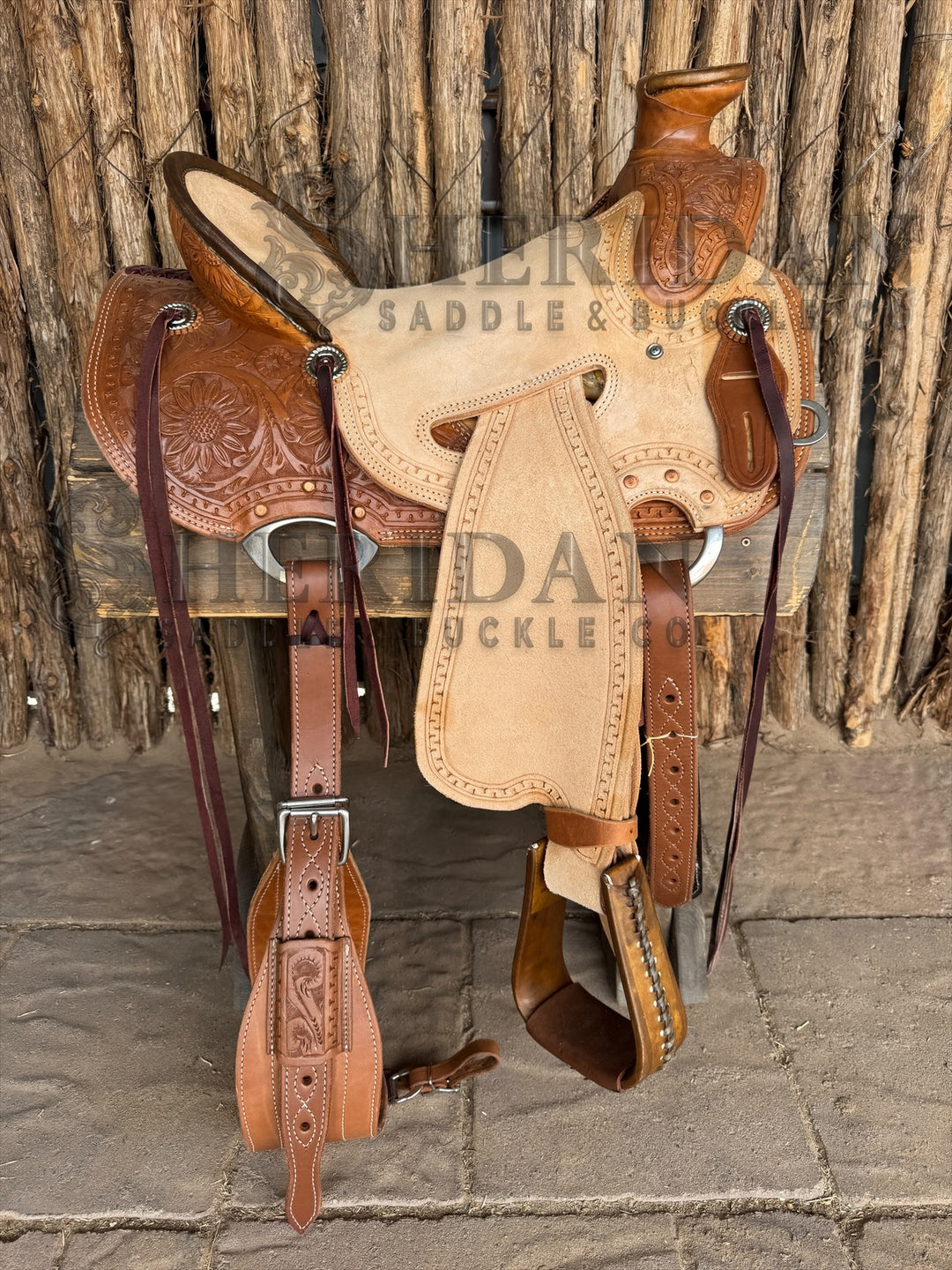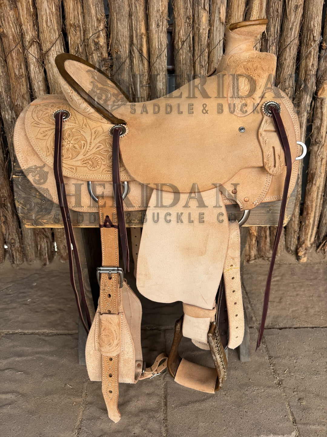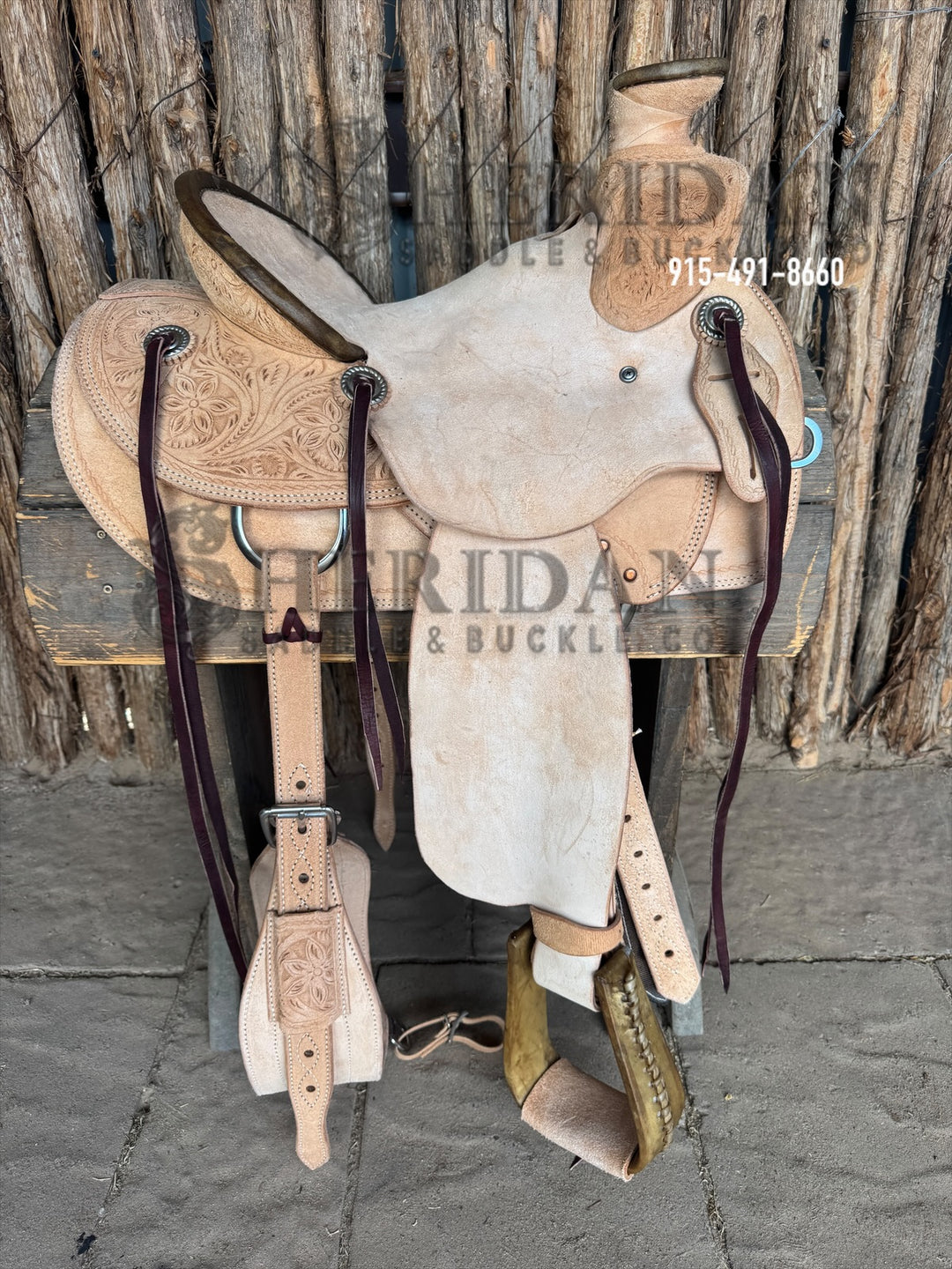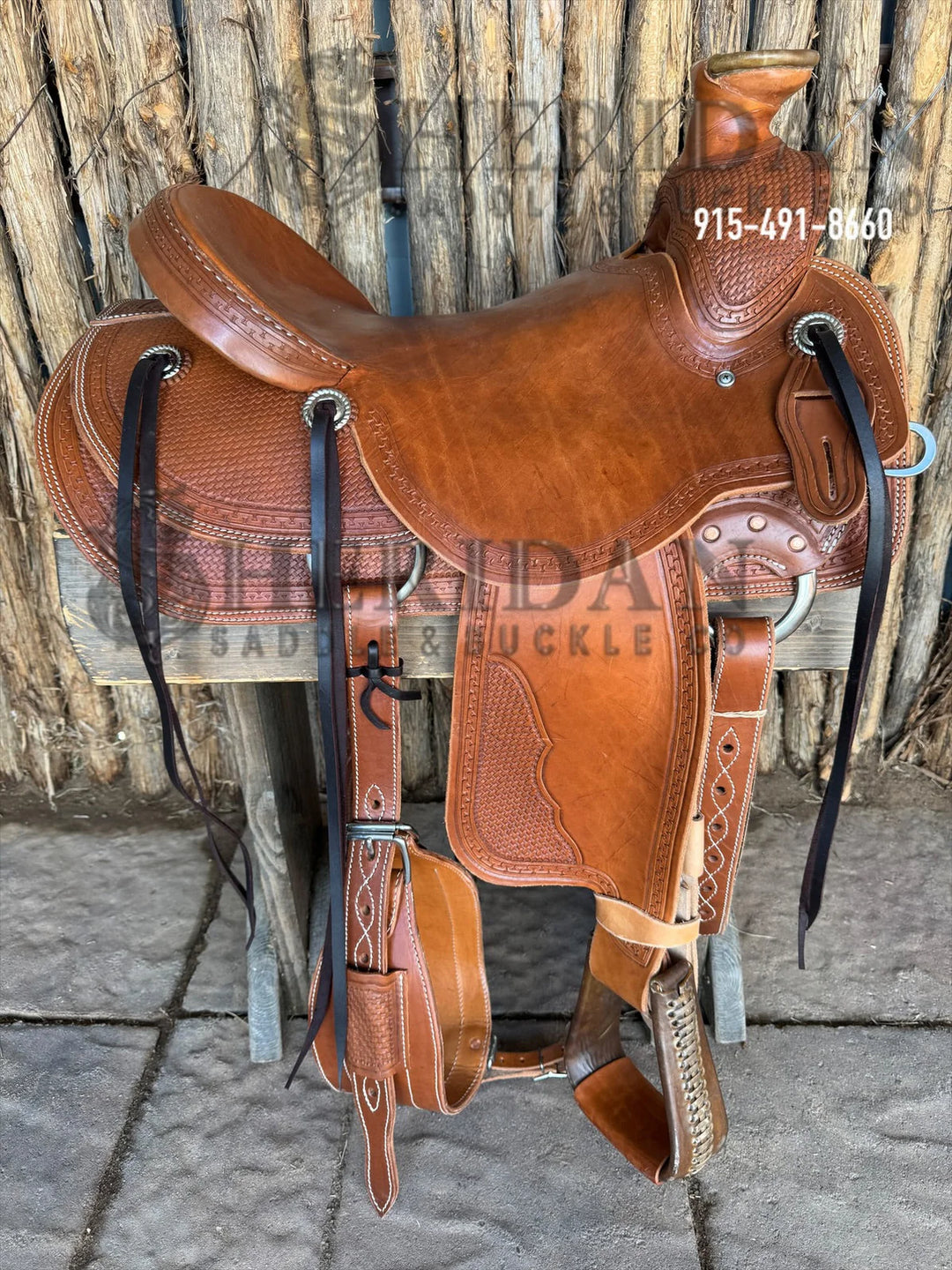 Check out our custom Sheridan In Stock Saddles. These saddles are in stock and ready to ship out in 1-2 days. Any saddle you see in this lineup can be made into trophy saddles with lettering, logos, and brands and shipped out right away.