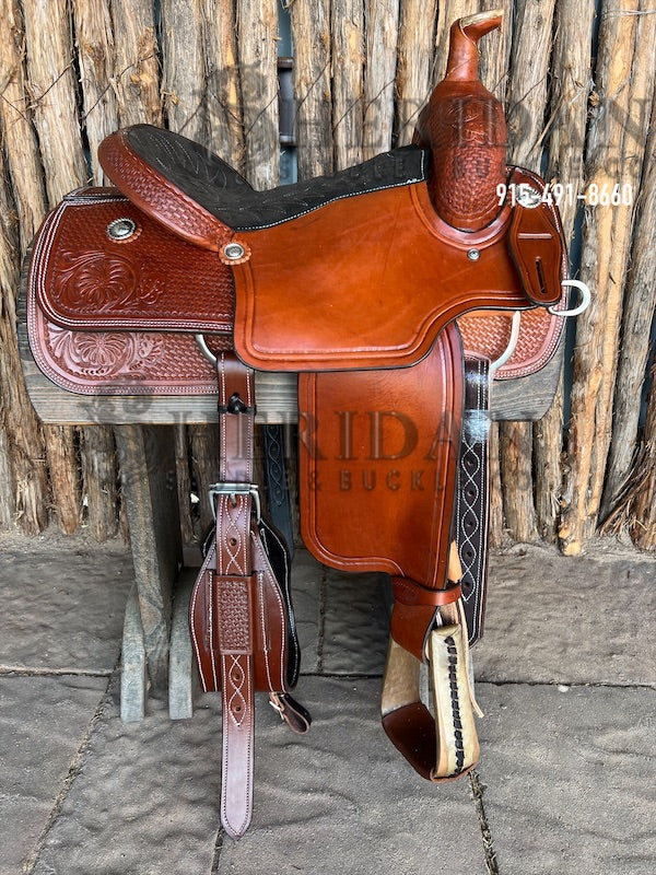 Check out our custom Sheridan In Stock Saddles. These saddles are in stock and ready to ship out in 1-2 days. Any saddle you see in this lineup can be made into trophy saddles with lettering, logos, and brands and shipped out right away.
