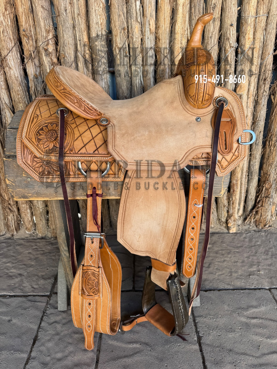 $940- 14.5" Sheridan Barrel Racing Saddle Strip Down