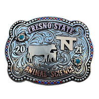 Belt buckles are a great way to show an achievement, and represent what you have accomplished. This buckle is only an example of how this buckle looks. Your buckle will be made to your specifications, lettering, stone color, etc. For example, if you see a lettering on the buckle, we will replace with your desired lettering, logos, FFA, 4H logos, you are the boss here. Just tell us what you need on there. That goes for the any symbol you see on the buckle also; whatever lettering, figurines you see on the buckle is just an example and will be changed to what you want.