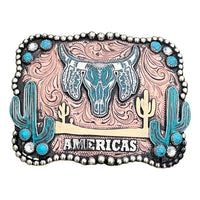 Belt buckles are a great way to advertise or show an achievement, or to personalize one for yourself. This buckle is only an example of how this buckle looks. Your buckle will be made to your specifications, lettering, stone color, etc. For example, if you see a team roper as a figurine and you would like a barrel racer, this will be changed to fit your needs. That goes for the lettering also; whatever lettering you see on the buckle is just an example and will be changed to the lettering you want.