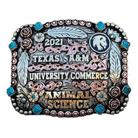 Belt buckles are a great way to show an achievement, and represent what you have accomplished. This buckle is only an example of how this buckle looks. Your buckle will be made to your specifications, lettering, stone color, etc. For example, if you see a lettering on the buckle, we will replace with your desired lettering, logos, FFA, 4H logos, you are the boss here. Just tell us what you need on there. That goes for the any symbol you see on the buckle also; whatever lettering, figurines you see on the buckle is just an example and will be changed to what you want.