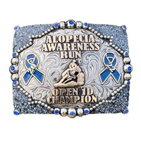 The Custer Buckle is a unique shaped silver plated buckle that looks awesome with its beautiful border. This custom trophy buckle has a very unique look, and the custom lettering can be changed to whatever you need. The shimmer of this buckle will catch your eye and is a great way to show off someone’s hard work, achievement, or personalization. This buckle measures 3.5" inches tall by 4.5" inches wide. The back of the buckle has a hook for your belt hole. It also has a swivel bar to attach to your belt.
