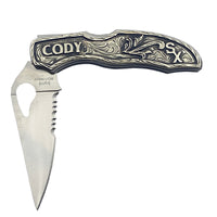 Sheridan offers the Byrd Meadowlark 2, made by Spyderco, with custom engraving on the handle. Design your own today for awards, or just a gift to yourself or someone special. This can include initials, brands, trophy wording, it is up to you. This is a great gift for yourself as well as trophy knifes to give away. Our engraved pocket knives are great as groomsmen gifts, fathers day gifts, mens graduation gifts, custom birthday presents and many more.
