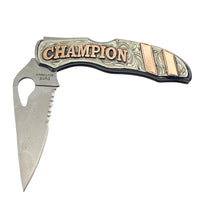 Sheridan offers the Byrd Meadowlark 2, made by Spyderco, with custom engraving on the handle. Design your own today for awards, or just a gift to yourself or someone special. This can include initials, brands, trophy wording, it is up to you. This is a great gift for yourself as well as trophy knifes to give away. Our engraved pocket knives are great as groomsmen gifts, fathers day gifts, mens graduation gifts, custom birthday presents and many more.