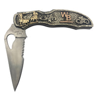 Sheridan offers the Byrd Meadowlark 2, made by Spyderco, with custom engraving on the handle. Design your own today for awards, or just a gift to yourself or someone special. This can include initials, brands, trophy wording, it is up to you. This is a great gift for yourself as well as trophy knifes to give away. Our engraved pocket knives are great as groomsmen gifts, fathers day gifts, mens graduation gifts, custom birthday presents and many more.