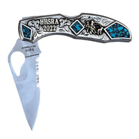 Sheridan offers the Byrd Meadowlark 2, made by Spyderco, with custom engraving on the handle. Design your own today for awards, or just a gift to yourself or someone special. This can include initials, brands, trophy wording, it is up to you. This is a great gift for yourself as well as trophy knifes to give away. Our engraved pocket knives are great as groomsmen gifts, fathers day gifts, mens graduation gifts, custom birthday presents and many more.