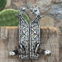 Design yourself a new set of spurs from Sheridan Buckle. We can make you a custom set of spurs with your name, brand, or championship wording and incorporate the engraving to make a piece of art for you. Sheridan Buckle offers the coolest and sturdiest line of spurs that you will be using for years to come. These spurs are sold in a pair of two (left and right foot). Feel free to use the form to tell us how we can customize this pair of spurs for you with initials, brand or logo, name, or just with pretty design work on them.