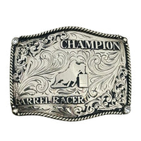 The Pickens trophy belt buckle is a unique shaped antique silver buckle and designed to fit a belt perfect. This custom trophy buckle has a very unique look, and the custom lettering can be changed to whatever you need. The engraving will catch your eye and is a great way to show off someone’s hard work, achievement, or personalization. This buckle measures 3.5" inches tall by 4.5" inches wide, But we can Make them Larger Or Smaller . The back of the buckle has a hook for your belt hole. It also has a swivel bar to attach to your belt.