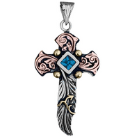 Personalized Feather Cross Necklace Pendant