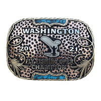 The Fly Fishing Sport Buckle is a really cool buckle as we incorporate anything to make your buckle or prizeline superb. Check out the fishing flies on the sides of the buckle. This custom trophy buckle has a very unique look, and the custom lettering can be changed to whatever you need. The shimmer of this buckle will catch your eye and is a great way to show off someone’s hard work, achievement, or personalization. The back of the buckle has a hook for your belt hole. It also has a swivel bar to attach to your belt.
