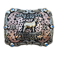 The Hollis Buckle is a unique shaped copper plated buckle that looks awesome with its beautiful border. This custom trophy buckle has a very unique look, and the custom lettering can be changed to whatever you need. The shimmer of this buckle will catch your eye and is a great way to show off someone’s hard work, achievement, or personalization. This buckle measures 3.5" inches tall by 4.5" inches wide. The back of the buckle has a hook for your belt hole. It also has a swivel bar to attach to your belt.