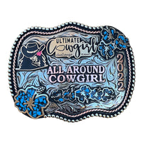 The Kauai Buckle is a unique shaped silver plated buckle that looks awesome with its beautiful Bead and rope border. This custom trophy buckle has a very unique look, and the custom lettering can be changed to whatever you need. The shimmer of this buckle will catch your eye and is a great way to show off someone’s hard work, achievement, or personalization. This buckle measures 3.5" inches tall by 4.5" inches wide. The back of the buckle has a hook for your belt hole. It also has a swivel bar to attach to your belt.