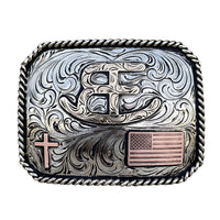 The Parma Buckle is a unique shaped silver plated buckle that looks awesome with its design . This custom buckle has a very unique look, and the custom lettering can be changed to whatever you need. The shimmer of this buckle will catch your eye and is a great way to show off someone’s hard work, achievement, or personalization. This buckle measures 3.5" inches tall by 4.5" inches wide. The back of the buckle has a hook for your belt hole. It also has a swivel bar to attach to your belt.