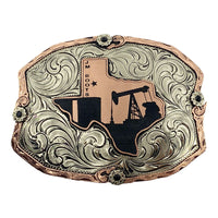 The Bucking Buckle is a square silver plated buckle that looks awesome with its Black Stones . This custom buckle has a very unique look, and the custom lettering can be changed to whatever you need. The shimmer of this buckle will catch your eye and is a great way to show off someone’s hard work, achievement, or personalization. This buckle measures 3.5" inches tall by 4.5" inches wide. The back of the buckle has a hook for your belt hole. It also has a swivel bar to attach to your belt.