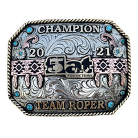 Belt buckles are a great way to advertise or show an achievement, or to personalize one for yourself. This buckle is only an example of how this buckle looks. Your buckle will be made to your specifications, lettering, stone color, etc. For example, if you see a team roper as a figurine and you would like a barrel racer, this will be changed to fit your needs. That goes for the lettering also; whatever lettering you see on the buckle is just an example and will be changed to the lettering you want.