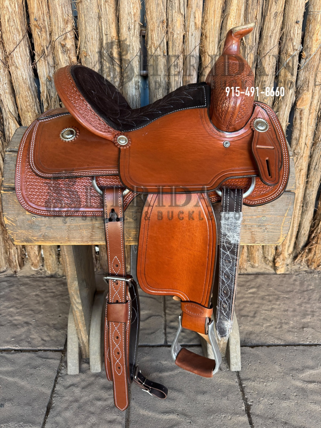 Check out our custom Sheridan In Stock Saddles. These saddles are in stock and ready to ship out in 1-2 days. Any saddle you see in this lineup can be made into trophy saddles with lettering, logos, and brands and shipped out right away.