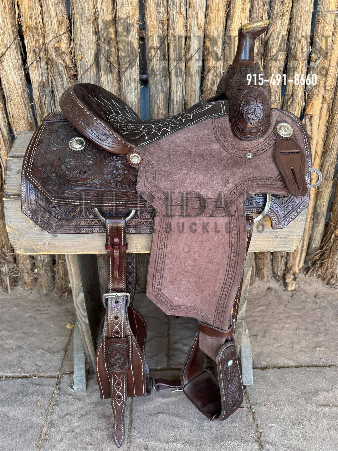 Check out our custom Sheridan In Stock Saddles. These saddles are in stock and ready to ship out in 1-2 days. Any saddle you see in this lineup can be made into trophy saddles with lettering, logos, and brands and shipped out right away.