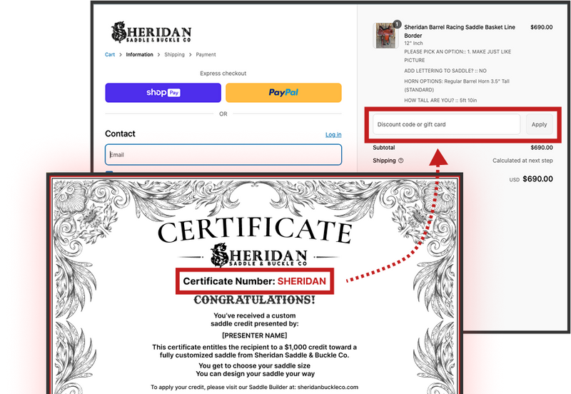 Build Your Custom Saddle in 3 easy steps. Start designing your saddle, approve the mockup, and apply your gift certificate code at checkout.