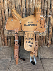 This saddle can be a trophy saddle as well. Sheridan Saddle can add you custom lettering to any saddle you see on the site. You can order it right here. Lettering can be added for $50.